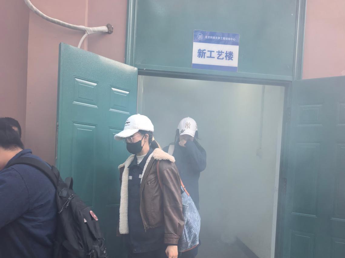 16:20,演习正式启动。保卫处指导人员在大厂房车工实习区域释放模拟烟雾,总指挥马聪迅速下达疏散指令,各应急小组即刻响应。疏散引导组按照预设方案,分区域引导师生撤离,全体师生弯腰捂口鼻,沿安全通道快速撤离。16:25,所有参与人员均安全抵达大厂房东侧门外空地集合点,圆满完成疏散任务。